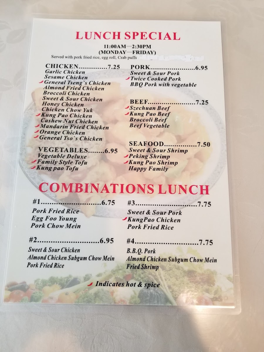 “ Stopped in on a Saturday for a late lunch. The parking lot was full, the dining room was not. Our waitress was very nice and attentive. We had ordered appetizers and meal. Every item was hot and fresh. I agree the taste of the fried rice tastes burnt. All the other food tasted great! Plenty big portions and fair price. Wish they were in my area! If I’m back in the area I’ll stop by again! The bbq pork is a hidden gem. Make sure to get some of that! ”